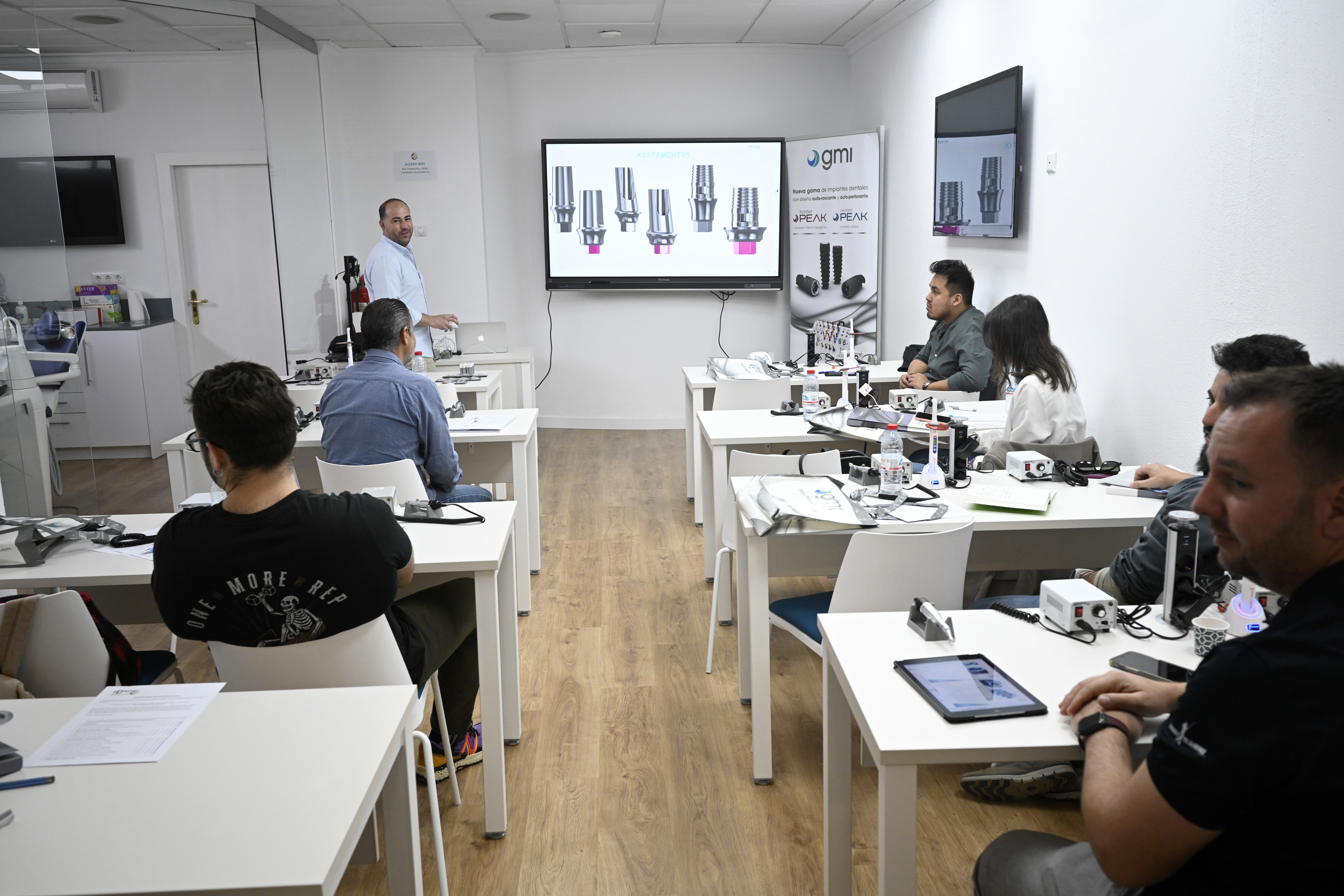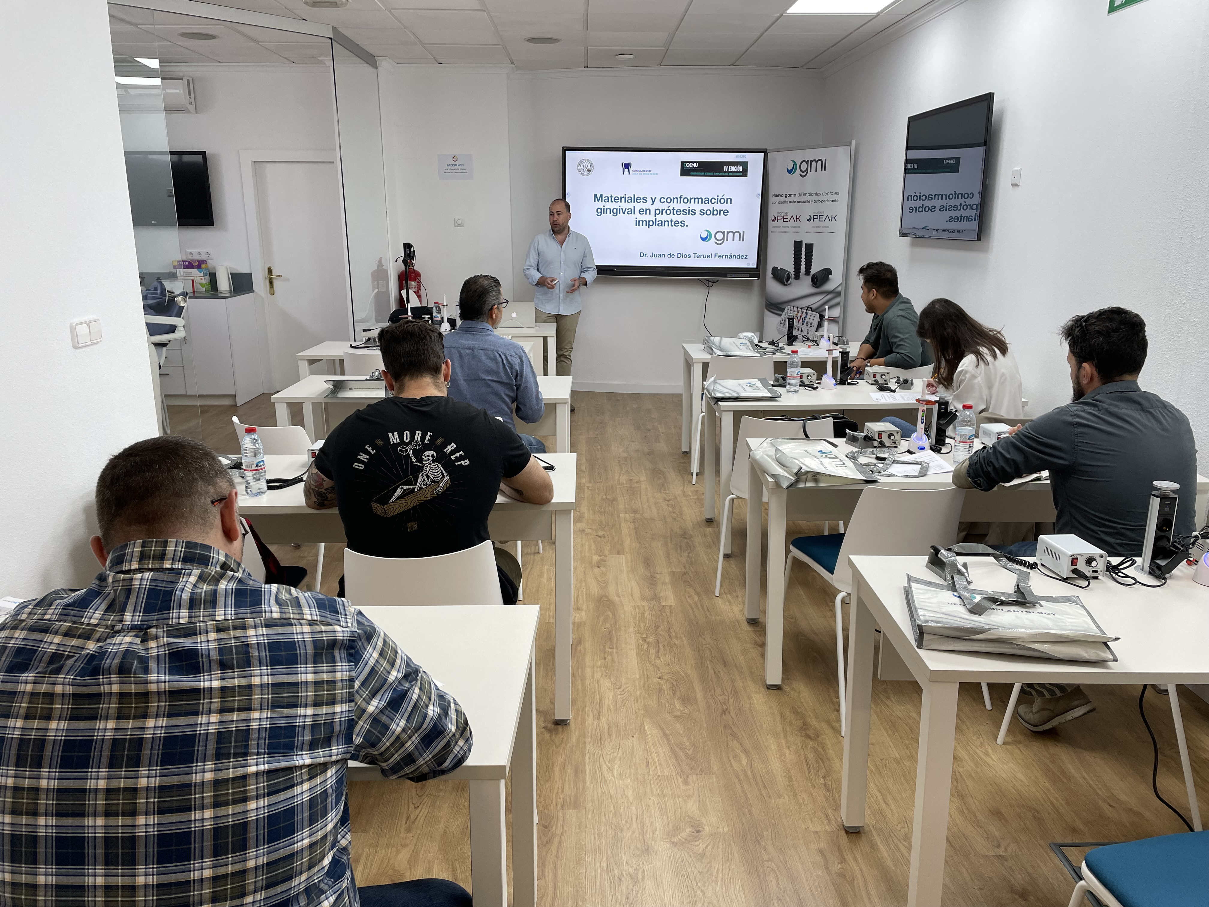 El curso fue un éxito con gran interés por los diferentes implantes GMI, sobretodo por los PEAK y las diferentes soluciones protésicas que el Dr. Juan de Dios les explicó brillantemente.